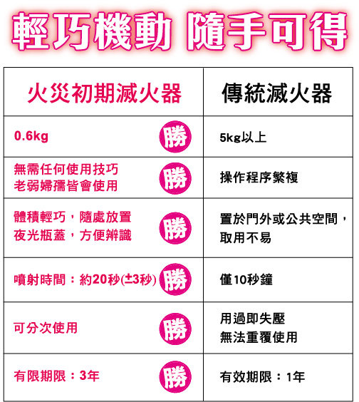 FIREOUT 滅火強 VS 傳統滅火器